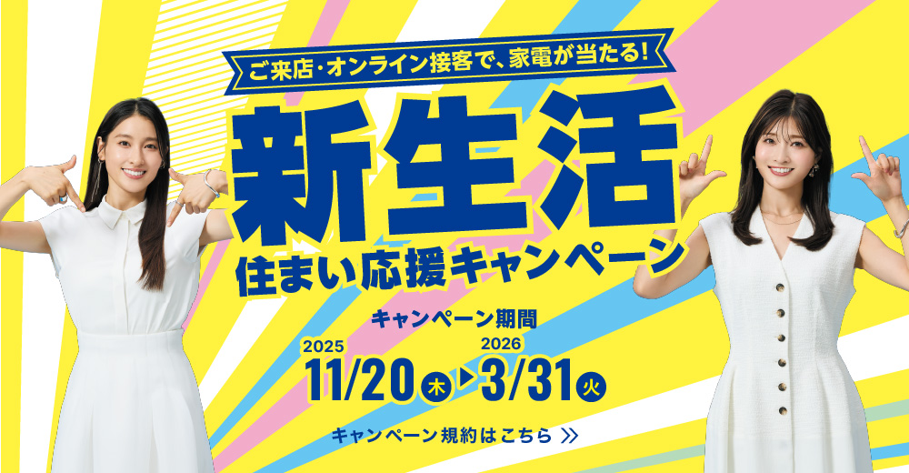 2026.1.12 新生活住まい応援キャンペーン!! 記事一覧へ 新着情報 2026.1.12 新生活住まい応援キャンペーン!! 2025.12.21 合格発表待ち仮予約受付中!! 2025.12.20 新築物件特集 2025.12.16 ☆新築物件のご紹介☆ 2025.12.16 年末年始休業のお知らせ